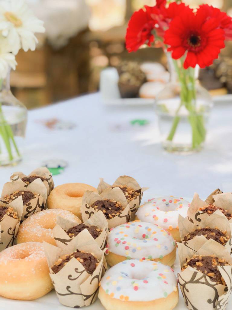 Au menu de l'après-midi gourmand sur le thème Las vegas : Muffin, cookies, cup cake, donuts, fontaine à chocolat, pancakes… Pas bon pour le régime, mais les invités se sont régalés !!