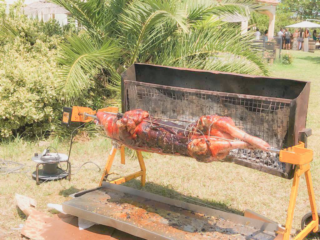 - un cochon de lait cuisson à la broche