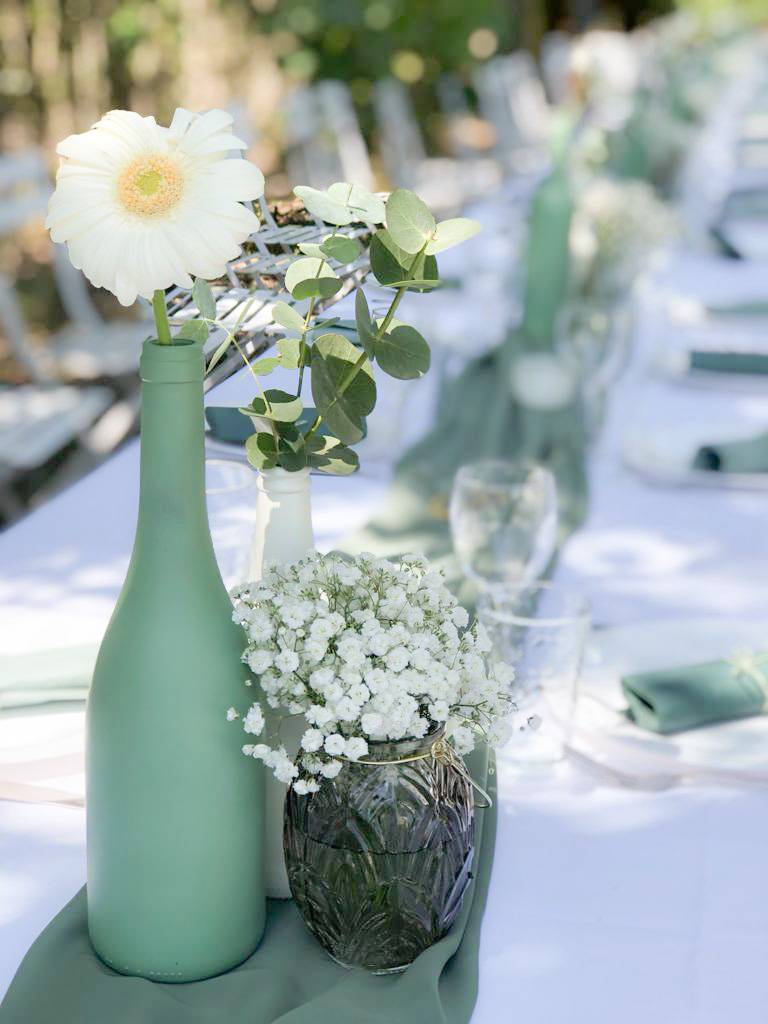 Pour le baptême de son petit garçon, elle souhaitait une jolie fête en Provence sur un thème couleur vert pastel.