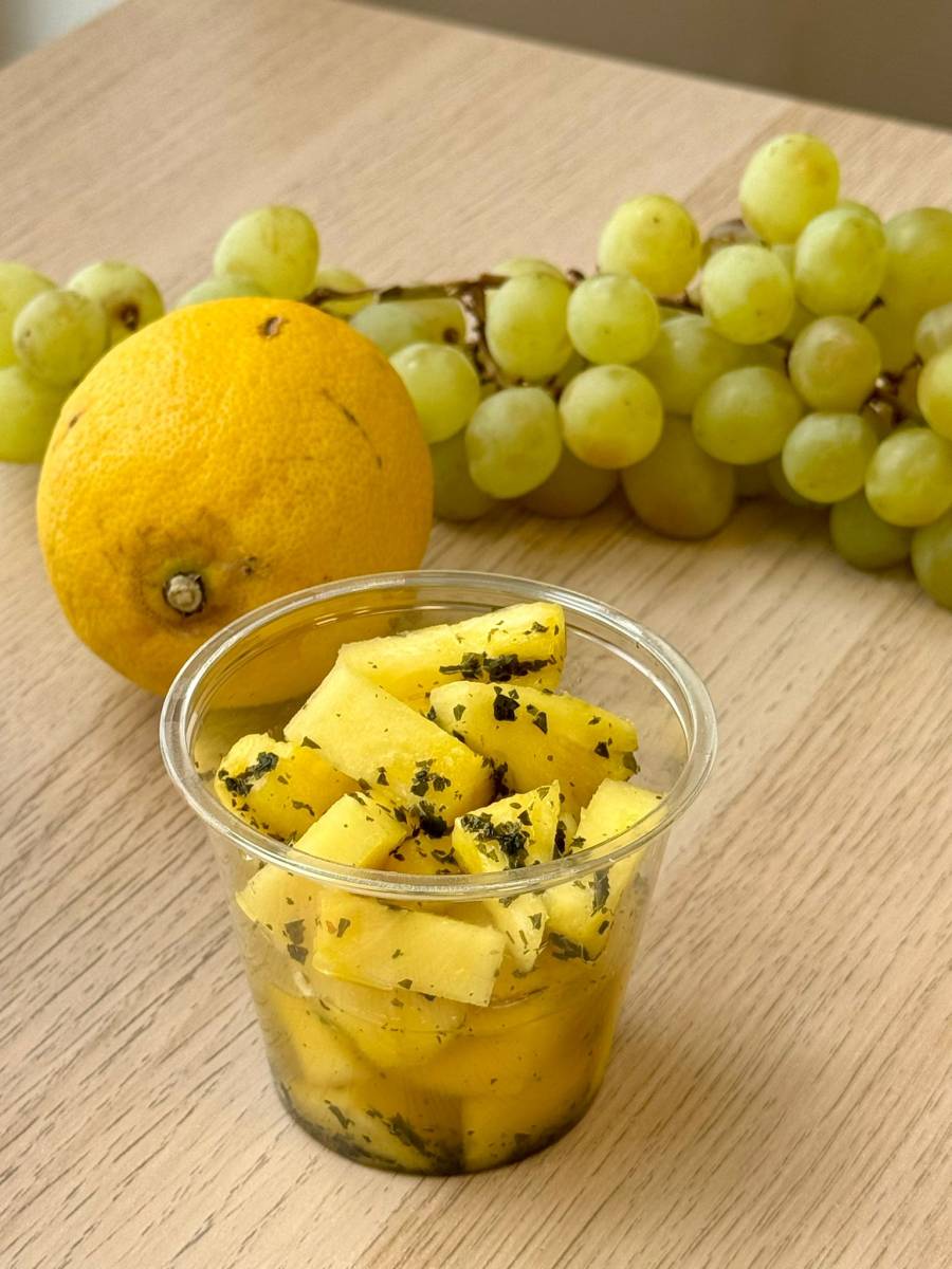 - Dessert : Verrine d'ananas au miel, citron et menthe