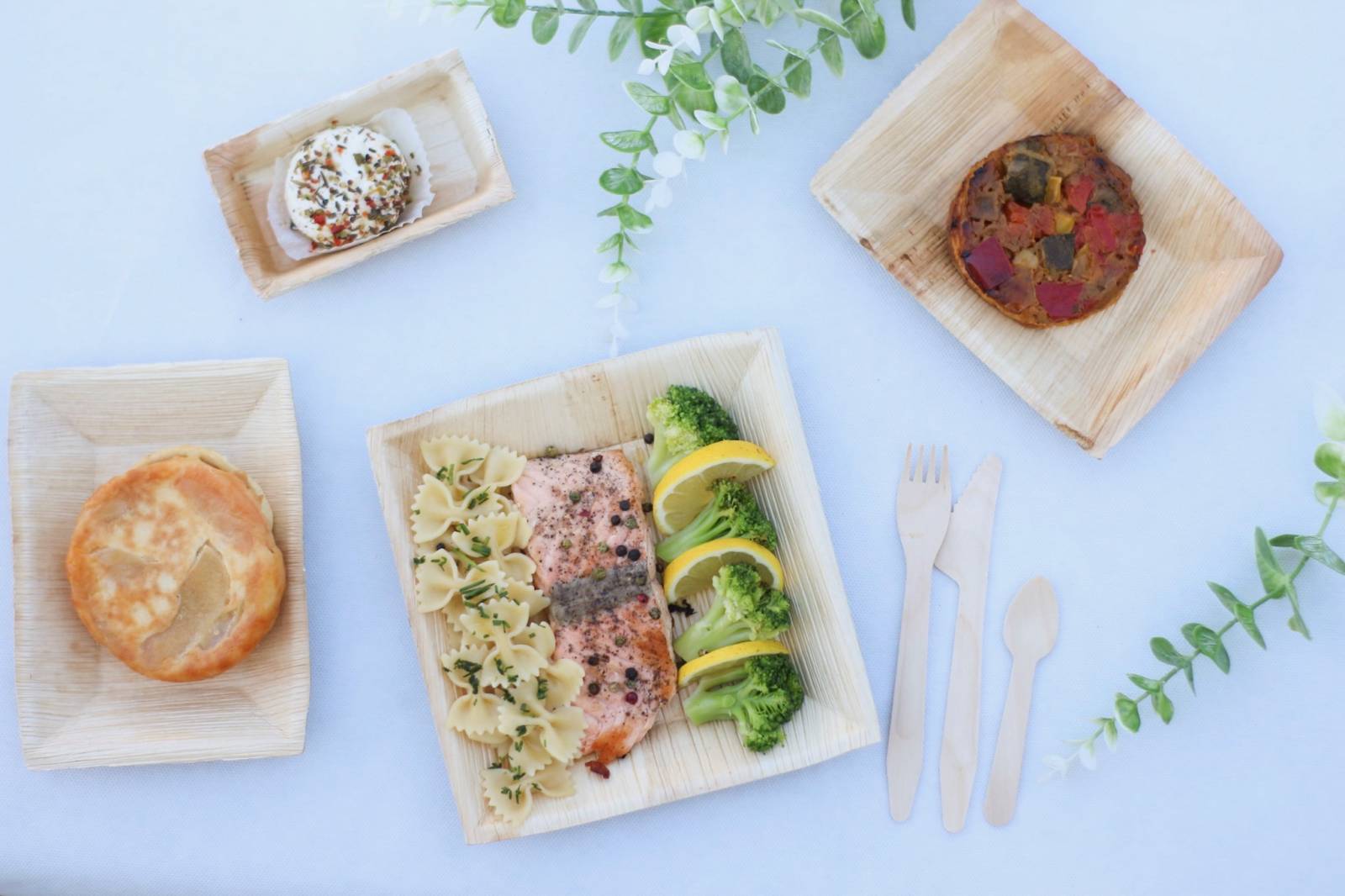 Nous vous proposons des repas frais, faits maisons, avec des produits locaux et en circuits courts. Engagés dans une démarche éco-responsable, nos plateaux repas sont jetables, dans des matériaux recyclés et recyclables.